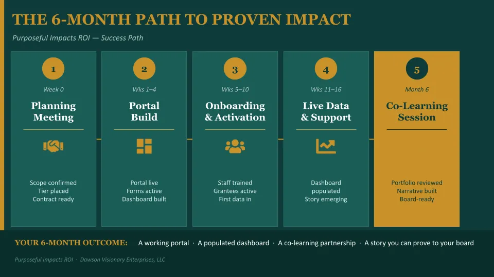 DVE builds, configures, and maintains every portal. Your staff and grantees show up to use the system — not to maintain it. Implementation is not your job. Your team will save time and be free to deepen their engagement and co-learning together.